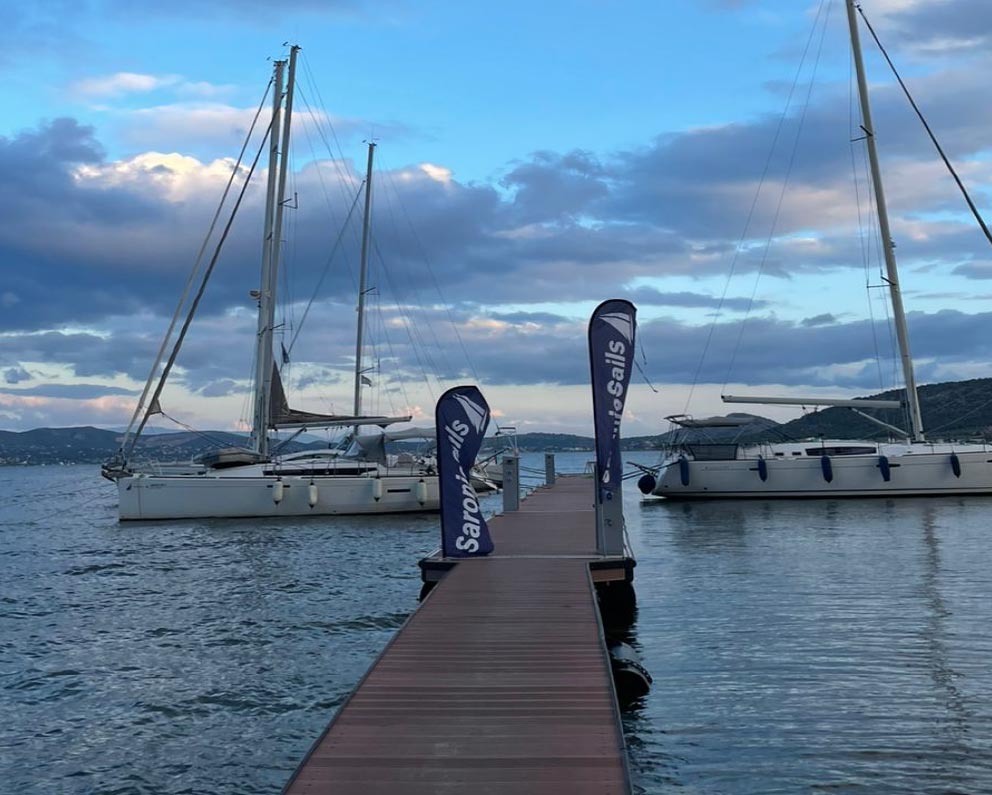 Adjacent to the main charter pontoon, a small private yacht club also operated by Saronic Sails serves as a reception and gathering point for crews using the western basin. The club provides drinks and light food and is primarily intended for charter clients and sailing crews operating from this part of the marina.