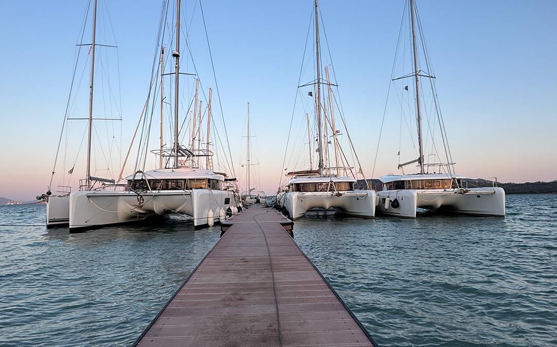The western basin of Nea Peramos Marina includes two floating pontoons operated by the charter company Saronic Sails. Each pontoon accommodates approximately 25 yachts.